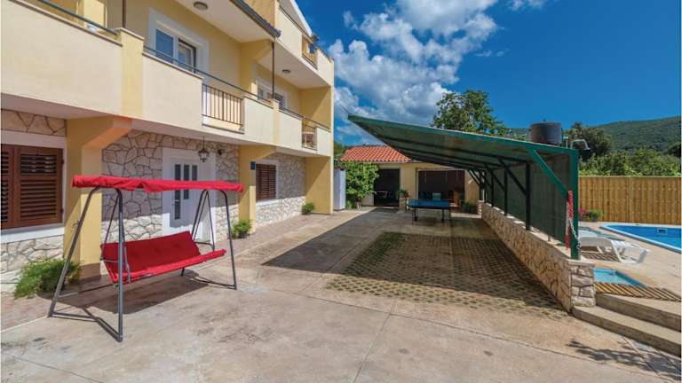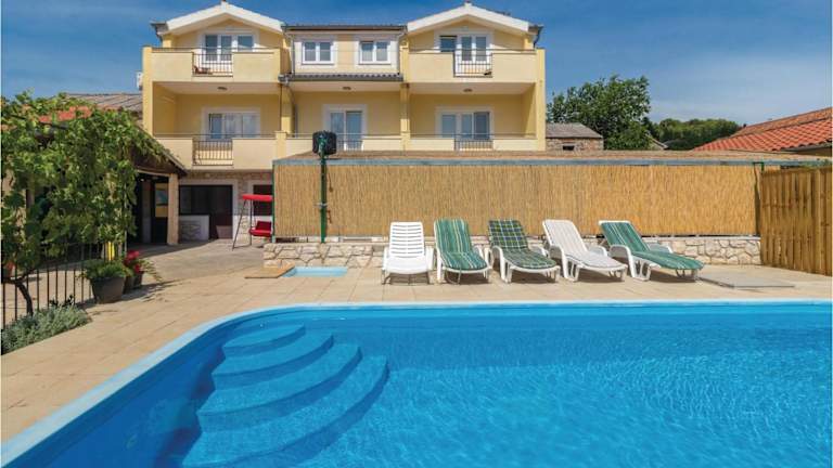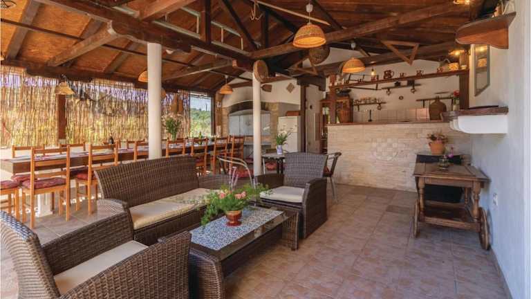 Das Holiday home Banj Croatia in Banj bietet Ihnen eine komfortable Unterkunft mit einer Terrasse, nur wenige Gehminuten vom Strand entfernt. Das Ferienhaus verfügt über 5 Schlafzimmer, ein geräumiges Wohnzimmer und eine voll ausgestattete Küche. Kostenlose Parkplätze und WLAN ergänzen das Angebot. Entdecken Sie die Schönheit von Banj und entspannen Sie in diesem gemütlichen Ferienhaus.