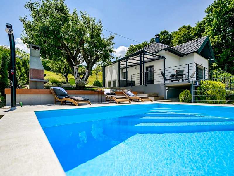 Das Holiday Home Beretinec Hills in Beretinec ist der perfekte Ort für einen erholsamen Urlaub. Mit einer Terrasse, einem saisonalen Außenpool, einer Sauna und einem Whirlpool können Sie sich hier rundum verwöhnen lassen. Das klimatisierte Ferienhaus bietet Platz für bis zu 6 Personen und verfügt über 3 Schlafzimmer, ein Wohnzimmer und eine voll ausgestattete Küche. Der Garten und der Grillplatz laden zum Entspannen und Genießen ein. Die Lage ist ideal, um die Umgebung zu erkunden, und auch der nächste Flughafen ist nicht weit entfernt.