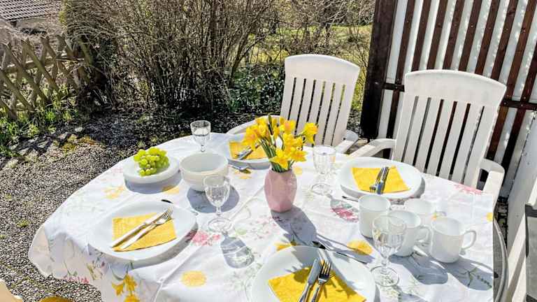 Das Ferienhaus bietet drei Schlafzimmer und ist mit einem TV, einer gut ausgestatteten Küche (einschließlich Kühlschrank und Geschirrspüler) sowie einem Badezimmer mit Badewanne oder Dusche ausgestattet. Es stehen auch Bettwäsche und Handtücher zur Verfügung. Ein Babybett kann bereitgestellt werden, allerdings fallen dafür zusätzliche Kosten an.
