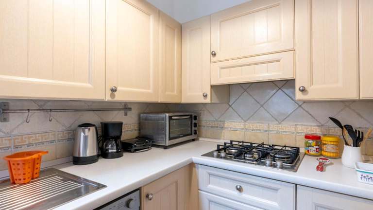 Die Unterkunft bietet eine voll ausgestattete Küchenzeile mit einem Kühlschrank und einer Kaffeemaschine, jedoch sind keine spezifischen Verpflegungsmöglichkeiten oder Essensangebote erwähnt.