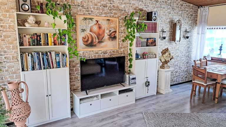 Das Ferienhaus verfügt über zwei Schlafzimmer, ein Badezimmer mit Dusche und eine gut ausgestattete Küche, die mit einem Kühlschrank und einem Geschirrspüler ausgestattet ist. Zur technischen Ausstattung gehören ein Flachbild-TV mit Kabelkanälen. Bettwäsche, Handtücher und Wäsche werden gemäß den Richtlinien der örtlichen Behörden gewaschen.