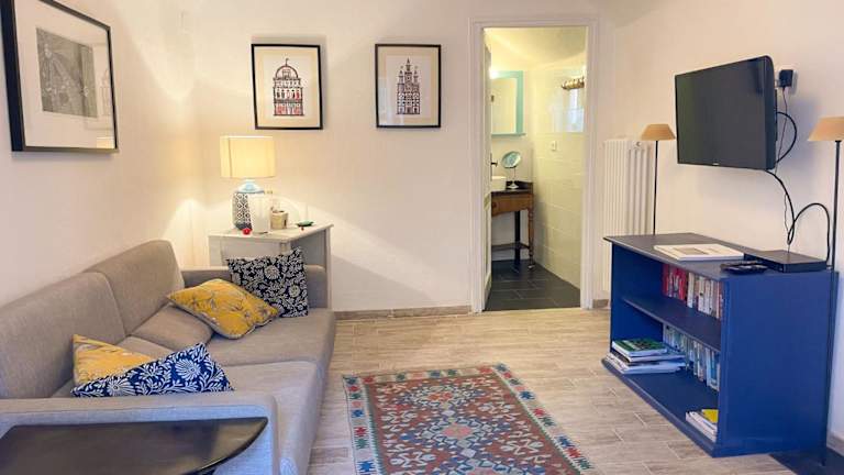 Das Ferienhaus verfügt über drei Schlafzimmer und eine Küche, die mit einem Kühlschrank und einem Geschirrspüler ausgestattet ist. Es sind zwei Badezimmer vorhanden, die jeweils mit einem Bidet und einer Dusche ausgestattet sind.