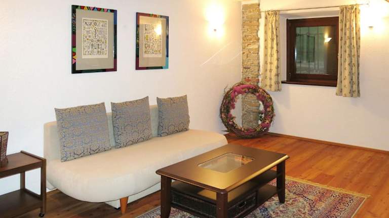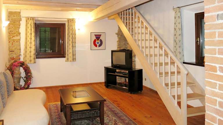 Das Ferienhaus umfasst ein Wohnzimmer und ist mit einem TV ausgestattet.