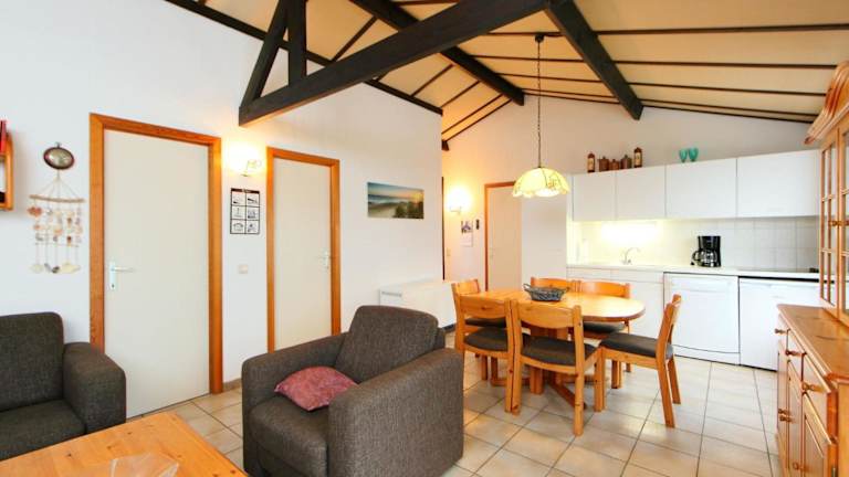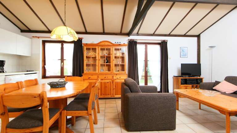 Das Ferienhaus verfügt über zwei Schlafzimmer und ein Badezimmer mit einer Dusche. Die gut ausgestattete Küche ist mit einem Kühlschrank und einem Geschirrspüler ausgestattet, und ein TV ist ebenfalls vorhanden.