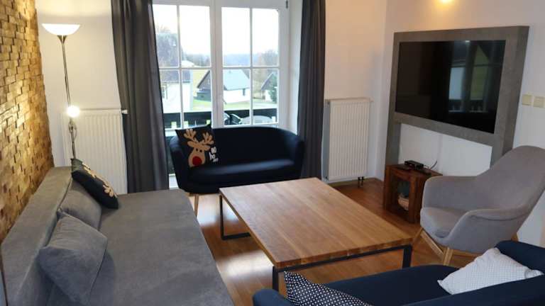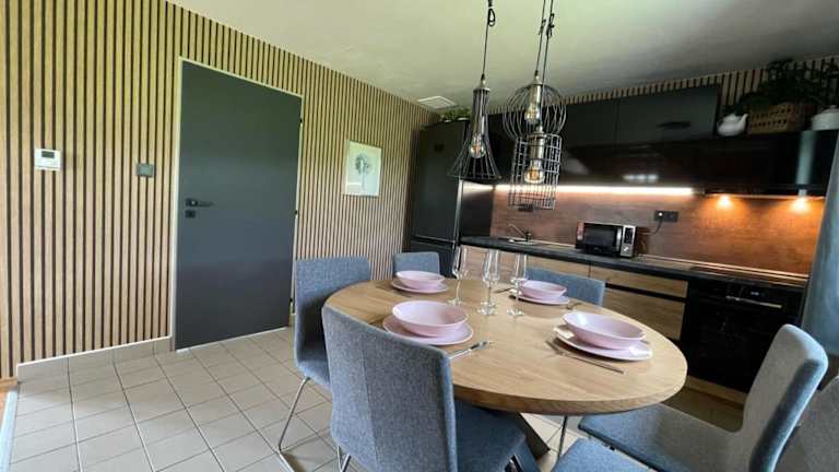 Das Ferienhaus umfasst ein Wohnzimmer mit einem TV, der Satellitenkanäle empfängt. Es gibt eine voll ausgestattete Küche mit einem Kühlschrank und einem Geschirrspüler sowie ein Badezimmer, das mit einer Dusche ausgestattet ist.