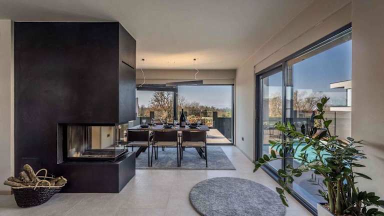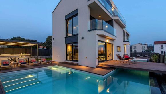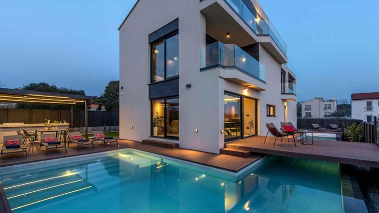 Die Holiday Home in Porec - Istrien 40356 ist eine Villa, die Übernachtungsmöglichkeiten in einem modernen Ambiente mit Klimaanlage, Terrasse, Garten und einem Außenpool bietet. Die Villa verfügt über drei Schlafzimmer, ein Wohnzimmer und eine voll ausgestattete Küche.