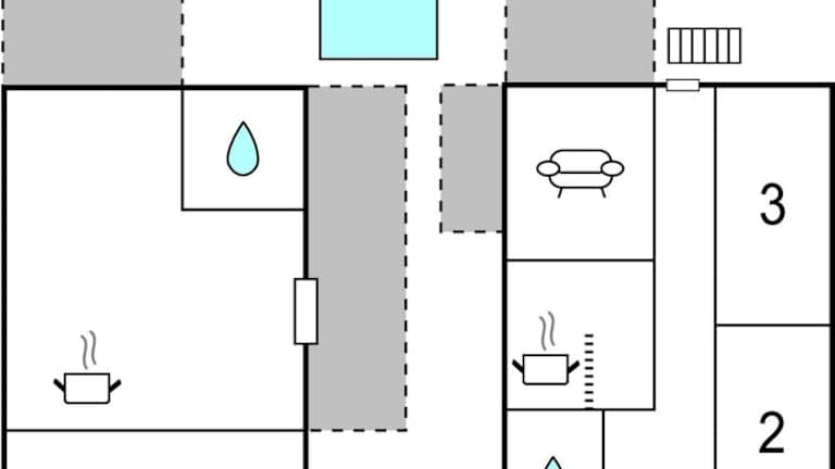 Das Ferienhaus verfügt über insgesamt 3 Schlafzimmer, ein Wohnzimmer und eine voll ausgestattete Küche. Die Küche ist mit einem Kühlschrank und einer Kaffeemaschine ausgestattet. Es gibt zudem 2 Badezimmer, die jeweils mit einer Dusche und einer Badewanne ausgestattet sind.
