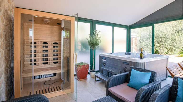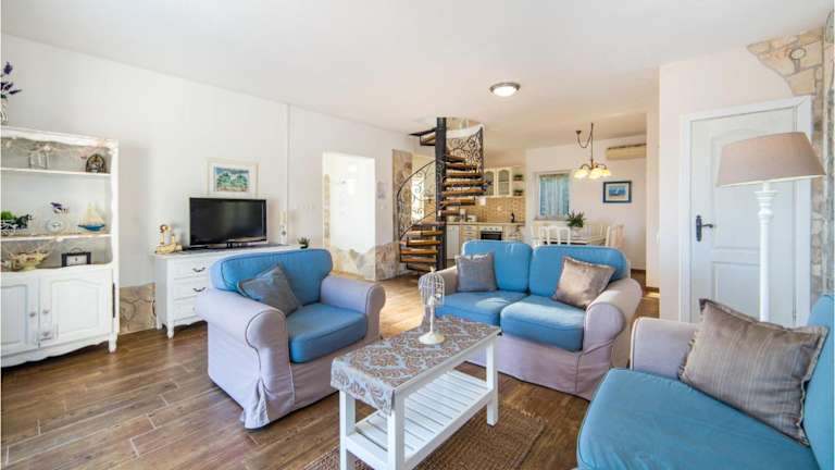 Das Haus bietet Platz für bis zu 6 Personen mit 3 Schlafzimmern, einem Wohnzimmer und 2 Badezimmern, die jeweils mit Dusche und Whirlpool ausgestattet sind. Klimaanlage und WLAN sind inkludiert. Zudem gibt es einen TV für Unterhaltung.