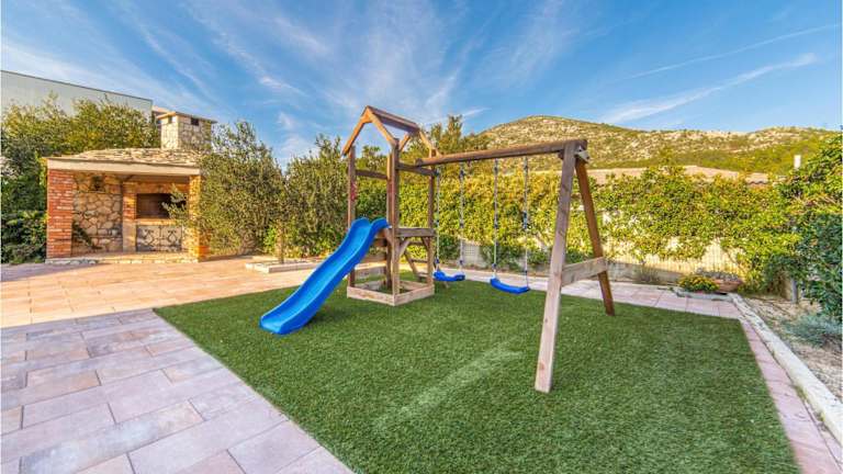 Die Unterkunft verfügt über einen Außenpool sowie eine Sauna. Zusätzlich sind Gartenmöbel und unser Garten für entspannende Stunden vorhanden. Es gibt Outdoorspielgeräte für Kinder.
