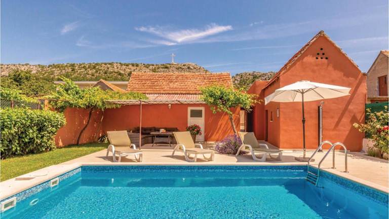 Cozy Home In Kresevo With Kitchen ist ein Ferienhaus, das Übernachtungsmöglichkeiten bietet. Es verfügt über eine Klimaanlage und einen Außenpool sowie eine Sonnenterrasse.