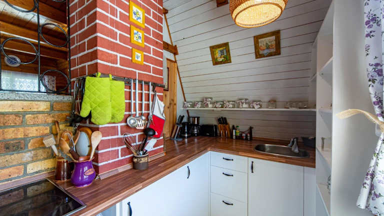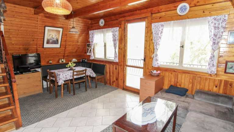 Das Ferienhaus verfügt über zwei Schlafzimmer, ein Wohnzimmer, einen TV und eine gut ausgestattete Küche mit Kühlschrank und Ofen. Das Badezimmer ist mit einer Badewanne oder Dusche ausgestattet. Es gibt die Möglichkeit, ein Babybett gegen Aufpreis oder ein zusätzliches Bett kostenfrei hinzuzufügen.