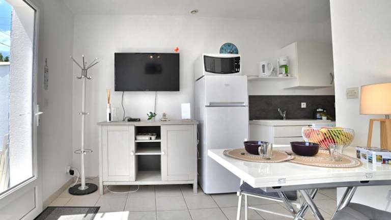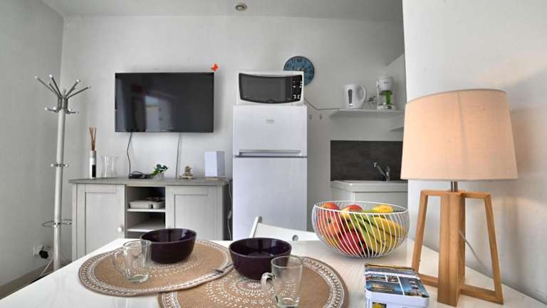 Das Ferienhaus verfügt über ein Schlafzimmer, ein Wohnzimmer sowie eine voll ausgestattete Küche. Zudem sind Handtücher und Bettwäsche gegen Gebühr erhältlich. Ein Babybett kann ebenfalls bereitgestellt werden, jedoch fallen dafür zusätzliche Kosten an.
