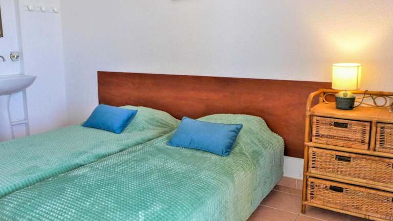 Das Ferienhaus umfasst zwei Schlafzimmer, einen TV, eine gut ausgestattete Küchenzeile und ein Badezimmer mit Dusche. Für zusätzliche Kosten können Handtücher und Bettwäsche ausgeliehen werden, und ein Zustellbett sowie ein Babybett sind verfügbar.