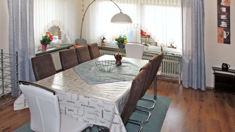 Das Ferienhaus verfügt über insgesamt 5 geräumige Schlafzimmer, die Platz für die ganze Familie bieten. Jedes Zimmer ist gemütlich eingerichtet und bietet Komfort für einen erholsamen Schlaf. Im Wohnbereich können Sie sich entspannen und Sat-TV genießen. Die Küche ist komplett ausgestattet mit einem Kühlschrank, einem Geschirrspüler und allem, was Sie zum Zubereiten Ihrer Mahlzeiten benötigen. Eine Waschmaschine steht ebenfalls zur Verfügung. Die 2 Badezimmer sind mit Duschen ausgestattet.