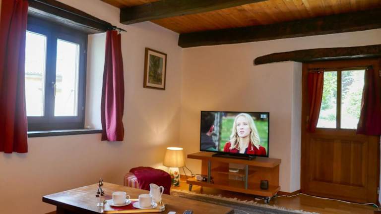 Das Ferienhaus umfasst 2 Schlafzimmer, ein Badezimmer mit Badewanne und Haartrockner sowie eine gut ausgestattete Küche mit Kühlschrank, Ofen und Herdplatte. Zur Ausstattung gehören auch Kabel-TV und eine Terrasse.