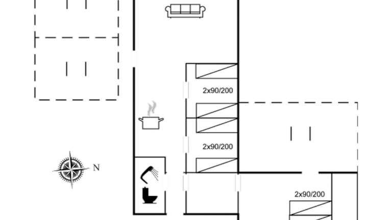 Das Ferienhaus verfügt über 3 Schlafzimmer, ein Badezimmer mit Dusche sowie eine gut ausgestattete Küche, die mit einem Kühlschrank und einem Geschirrspüler ausgestattet ist. Ein TV ist ebenfalls vorhanden.