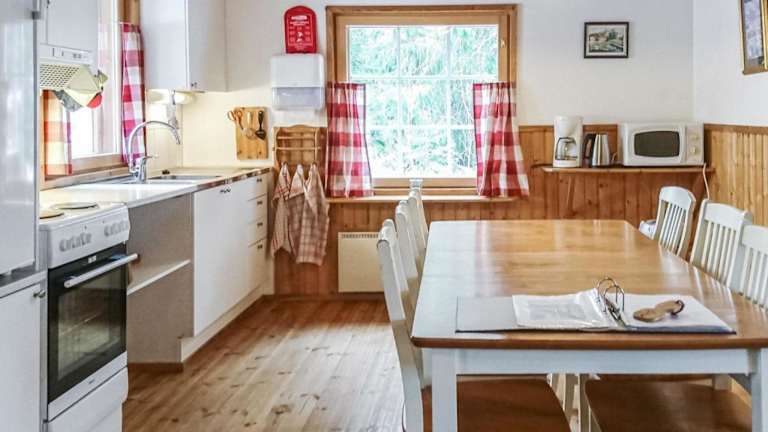 Das Ferienhaus ist mit einem Fernseher ausgestattet. Die Küchenzeile verfügt über einen Kühlschrank, der die Zubereitung einfacher Mahlzeiten ermöglicht.