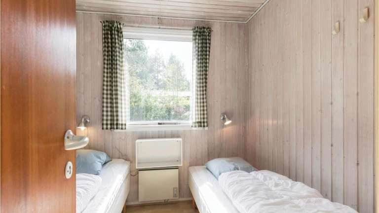 Das Ferienhaus verfügt über drei Schlafzimmer und ein Wohnzimmer. Die Küche ist vollständig eingerichtet und enthält unter anderem einen Kühlschrank und einen Geschirrspüler.