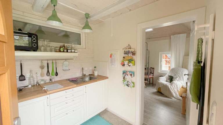 Das Ferienhaus verfügt über 1 Schlafzimmer und ist mit einer Küchenzeile ausgestattet, die einen Kühlschrank und einen Ofen umfasst. Zusätzlich gibt es ein Badezimmer, das mit einer Dusche und einem Haartrockner versehen ist.