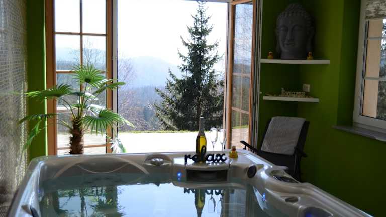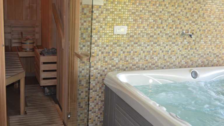 Die Unterkunft Holiday Home with Hot tub and Sauna Sabina bietet einen beeindruckenden Poolblick und ist ausgestattet mit einem Balkon, einer Kaffeemaschine sowie einer gemeinschaftlichen Küche. Es handelt sich um ein Ferienhaus, das über einen kostenlosen Privatparkplatz verfügt und kostenloses WLAN bereitstellt.