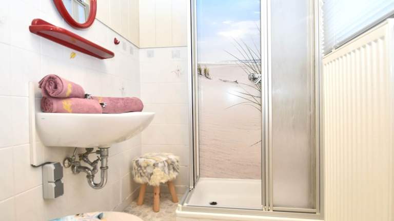 Das Ferienhaus verfügt über ein Schlafzimmer, ein Wohnzimmer, zwei Badezimmer mit Dusche sowie eine Terrasse mit Gartenblick. Handtücher und Bettwäsche werden bereitgestellt.