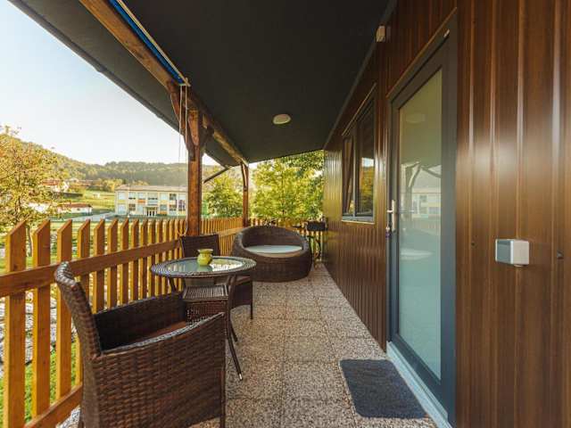 Holiday Homes I&G by the river next to Olimje bietet eine hauseigene Terrasse mit Blick auf die Stadt sowie eine einladende Atmosphäre dank ihrer Lage am Fluss.