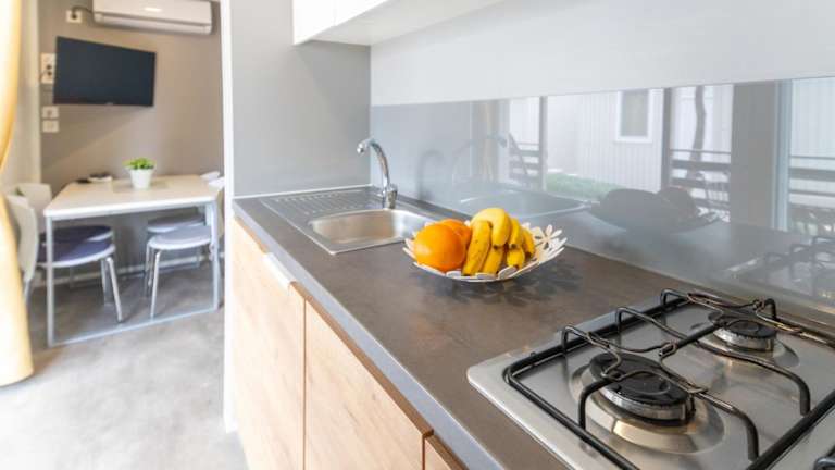 Die Zimmer sind mit einer Veranda oder einem Patio, einem Sitzbereich, einem Satelliten-Flachbild-TV und einer voll ausgestatteten Küche mit Kühlschrank und Geschirrspüler ausgestattet. Ein eigenes Badezimmer mit Dusche und Haartrockner ist ebenfalls vorhanden.