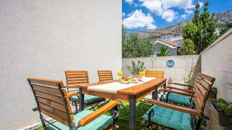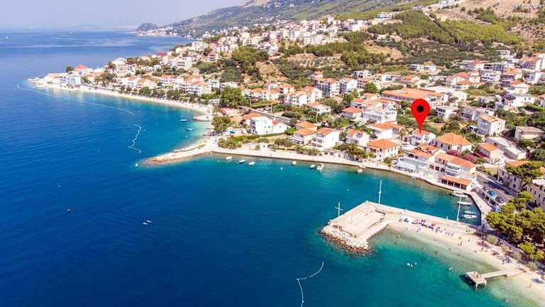 Die Unterkunft befindet sich in Dugi Rat, nur 20 Meter vom Meer entfernt. Die Umgebung bietet zudem Zugang zu einem Balkon und einen kostenlosen Privatparkplatz. Der nächstgelegene Strand, Strand Orij West, ist 100 Meter entfernt. Die Unterkunft liegt 34 Kilometer vom Flughafen Split entfernt und der Diokletianpalast ist 19 Kilometer entfernt.