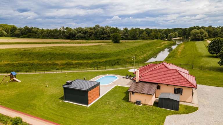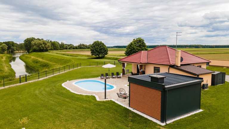 Das Holiday House Drava Relax befindet sich in Pitomača und bietet Blick auf den Fluss sowie Zugang zu einem Garten und einer Terrasse.