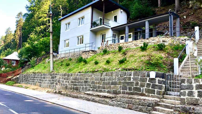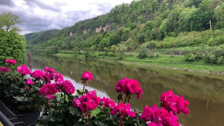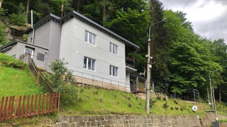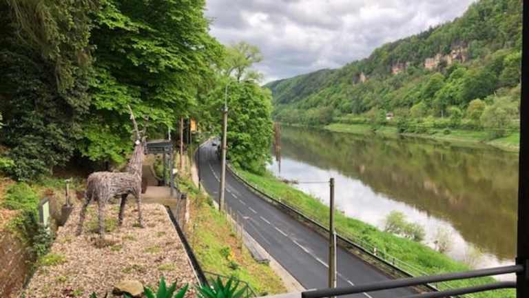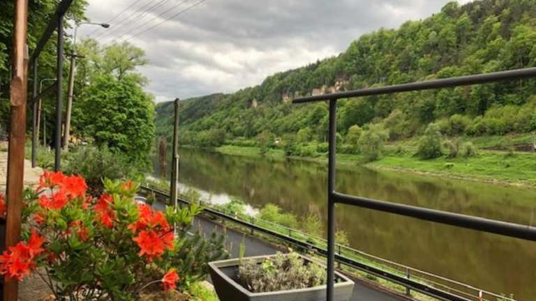 Die Unterkunft befindet sich in Hřensko und bietet einen Blick auf den Fluss. Die Umgebung ist durch die Nähe zur Festung Königstein und zum Nationalpark Sächsische Schweiz geprägt.