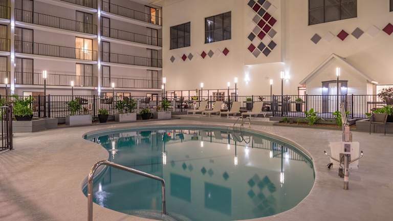Das Holiday Inn Auburn - Finger Lakes Region bietet 165 Zimmer und zeichnet sich durch eine freundliche Atmosphäre aus. Das Hotel verfügt über Aufzüge und verschiedene Annehmlichkeiten wie einen Garten, eine Gepäckaufbewahrung, einen Safe und Verkaufsautomaten. Zur Verfügung stehen ein Kamin für angenehme Stimmung, ein Souvenirshop sowie behindertengerechte Einrichtungen. Das Hotel ist auf Familien ausgerichtet und bietet einen Zimmerservice, ein Business-Center und medizinische Betreuung an. WLAN ist im gesamten Hotel kostenfrei.