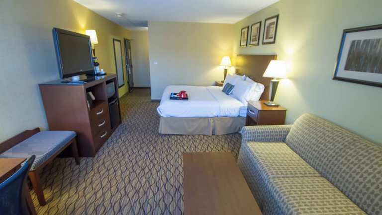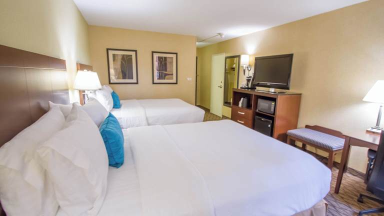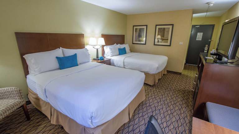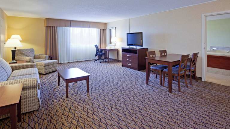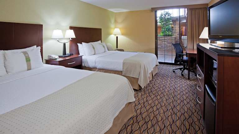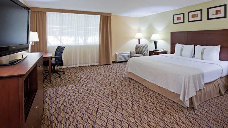 Das Holiday Inn Bloomington Airport verfügt über 171 Nichtraucherzimmer, die über einen Aufzug erreichbar sind. Die Zimmer sind komfortabel eingerichtet und bieten Annehmlichkeiten wie Klimaanlage, Schreibtisch, kostenfreies WLAN und einen Sitzbereich. Eine Kaffeemaschine ist ebenfalls vorhanden.