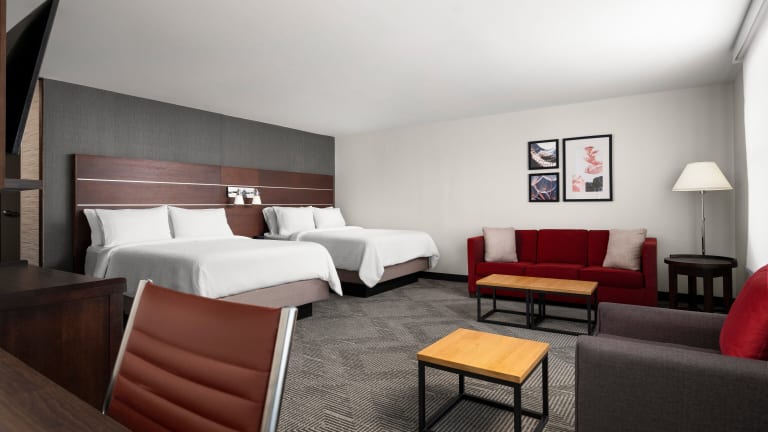 Die Zimmer sind klimatisiert und verfügen über eine individuelle Heizung. Jedes Zimmer ist mit einem Sofa, einem Kühlschrank, einer Mikrowelle sowie einer Tee-/Kaffeemaschine ausgestattet. Zur weiteren Ausstattung gehören ein Safe, ein Schreibtisch, ein Telefon mit Direktwahl, ein TV-Gerät mit Satelliten-/Kabelempfang und kostenfreies WLAN. Im Badezimmer sind eine Dusche und eine Badewanne, sowie Kosmetikartikel und ein Haartrockner vorhanden. Es werden auch rollstuhlgerechte Zimmer angeboten.