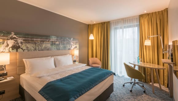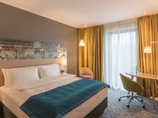 Die Zimmer sind mit Klimaanlage, einem Queensize-Bett sowie weiteren Annehmlichkeiten wie einem Safe, einer Minibar, einem Schreibtisch und einer Tee-/Kaffeemaschine ausgestattet. Ein Bügelset, Telefon, Sat-TV und kostenloses WLAN sind ebenfalls vorhanden. Die Badezimmer verfügen über eine Dusche und einen Haartrockner. Rollstuhlgerechte Zimmer mit barrierefreiem Badezimmer sind ebenso buchbar. Nichtraucherzimmer sind verfügbar.
