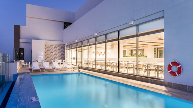 Entspannen Sie sich am Außenpool oder halten Sie sich im Fitnesscenter fit. Das Hotel bietet auch Tennisplätze und Aerobic-Kurse für aktive Gäste.