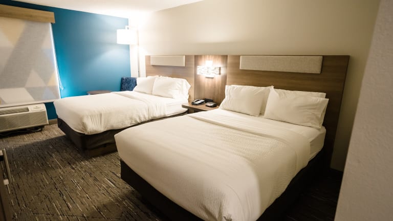 Die Zimmer im Holiday Inn Express Hotel & Suites Knoxville-North-I-75 Exit 112, an IHG Hotel, bieten den Gästen Komfort und Bequemlichkeit während ihres Aufenthalts. Jedes Zimmer ist mit Annehmlichkeiten wie einer Mikrowelle, einem Kühlschrank, Kaffeezubehör und Kabel-TV ausgestattet. Kostenloses WLAN ist in allen Zimmern verfügbar und ein Schreibtisch bietet den Gästen einen Arbeitsbereich. Die klassisch eingerichteten Zimmer bieten eine angenehme Atmosphäre für eine erholsame Nacht.