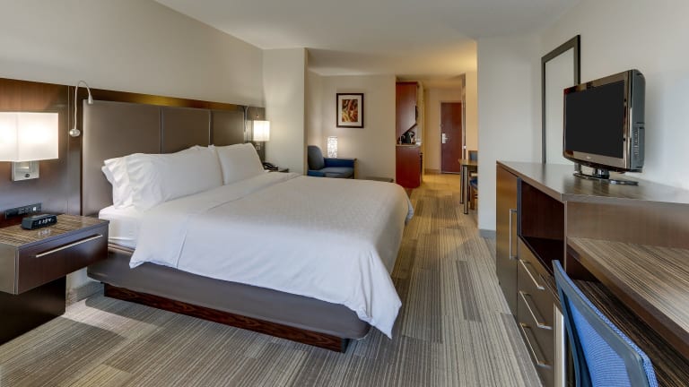 Das Holiday Inn Express Hotel & Suites Dayton-Centerville bietet 74 Nichtraucherzimmer auf drei Etagen. Jedes Zimmer ist mit modernen Annehmlichkeiten wie Klimaanlage, Mikrowelle, Minikühlschrank und Kaffeezubereiter ausgestattet. Ein Schreibtisch ist ebenfalls vorhanden, um den Gästen einen bequemen Arbeitsbereich zu bieten. Rollstuhlgerechte Zimmer mit barrierefreien Badezimmern sind ebenfalls verfügbar.