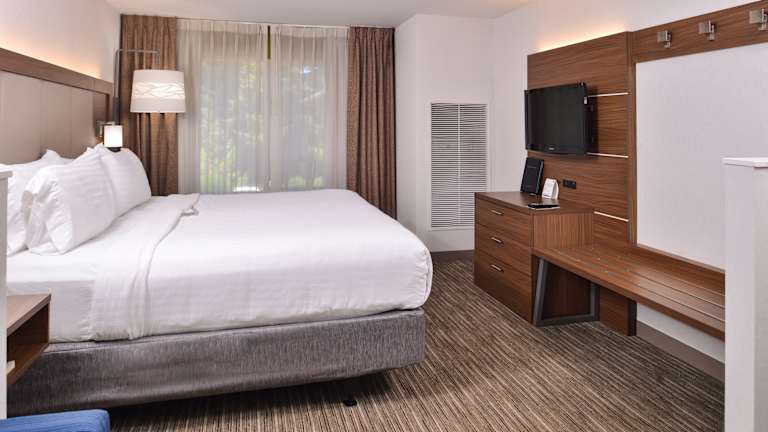 Die Zimmer im Holiday Inn Express Hotel & Suites Lacey sind modern und komfortabel eingerichtet. Die klimatisierten Zimmer bieten eine angenehme Atmosphäre und sind mit Annehmlichkeiten wie Kabel-TV und kostenfreiem WLAN ausgestattet. Einige Suiten verfügen über einen separaten Sitzbereich. Zusätzlichen Komfort bietet die chemische Reinigung und der Waschsalon im Hotel.