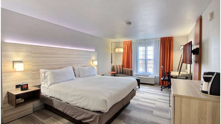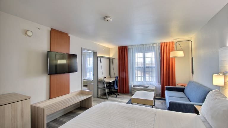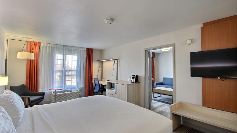 Das Holiday Inn Express Hotel & Suites Milwaukee Airport bietet 115 Nichtraucherzimmer auf 3 Etagen. Jedes Zimmer verfügt über eine Klimaanlage, einen Schreibtisch, einen Flachbildfernseher mit Kabelempfang und Pay-per-View-Optionen sowie kostenloses WLAN. Zur Ausstattung gehören auch eine Mikrowelle, ein Mini-Kühlschrank und eine Kaffeemaschine. Barrierefreie Zimmer mit rollstuhlgerechten Badezimmern sind ebenfalls verfügbar.