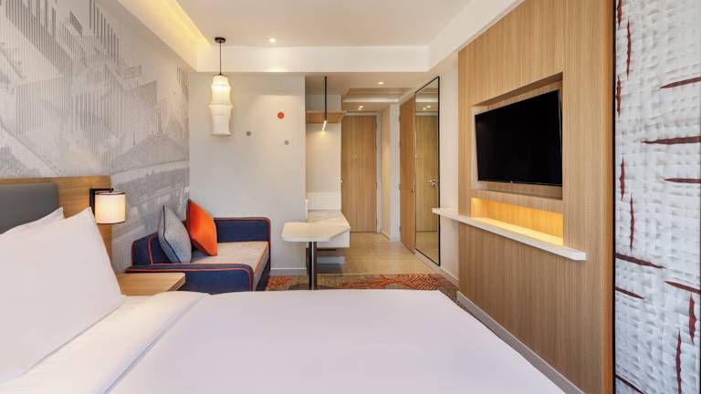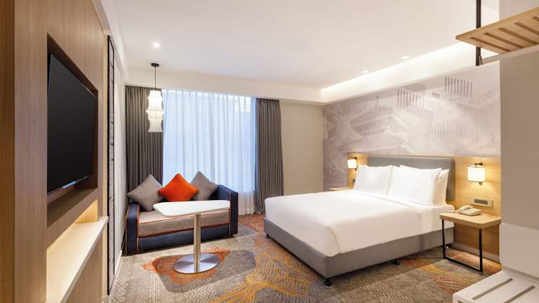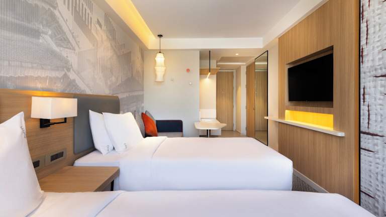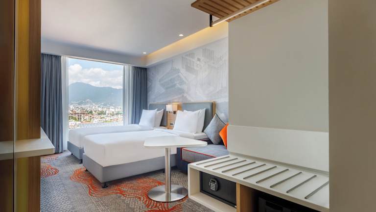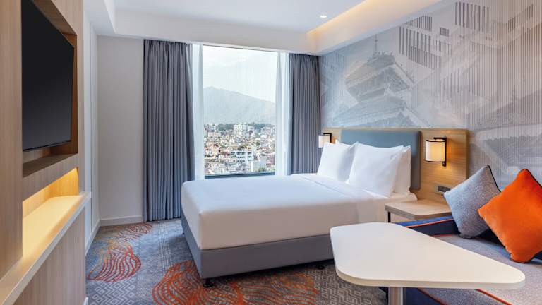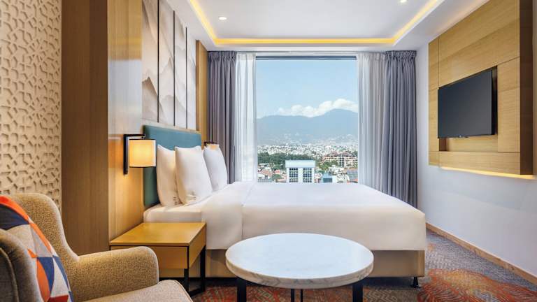 Die Zimmer sind mit einem Doppelbett oder einem Queensize-Bett ausgestattet und verfügen über kostenfreies WLAN, einen Flachbild-TV, ein eigenes Badezimmer sowie eine Minibar. Die Unterbringung bietet Familien- und Nichtraucherzimmer, wobei einige Zimmer einen Blick auf die Stadt bieten.