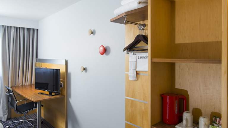 Die Zimmer sind klimatisiert und verfügen über Teppichböden, ein Doppelbett oder Sofabett, Safe, Schreibtisch sowie eine Tee-/Kaffeemaschine. Zur weiteren Ausstattung gehören ein Haartrockner, Dusche, Telefon, Sat-TV, Radio und kostenloses WLAN. Rollstuhlgerechte Zimmer sind ebenfalls buchbar. Die Badezimmer bieten eine Auswahl an Handtüchern.