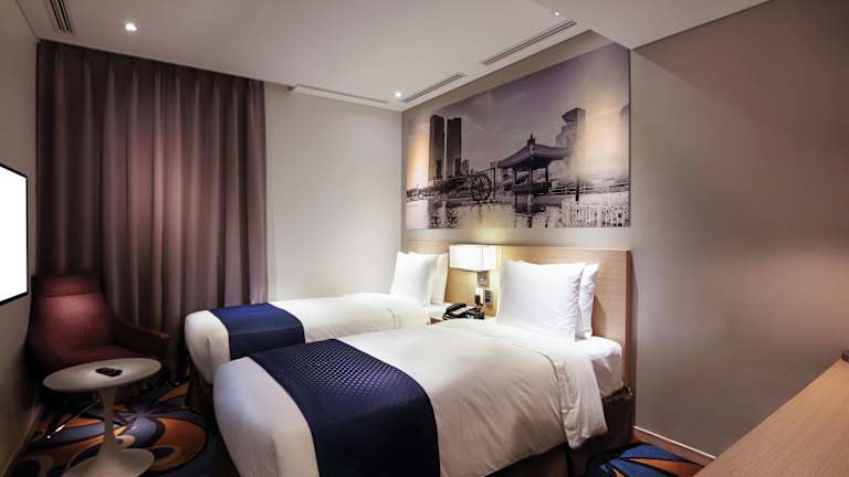 Das Travelodge Myeongdong Euljiro in Seoul bietet eine ausgezeichnete Unterkunft für Reisende, die die Stadt erkunden möchten. Mit seinem Highspeed-WLAN und dem rund um die Uhr verfügbaren Support sind Sie immer bestens vernetzt und finden sich problemlos in der lebendigen Metropole zurecht. Die zentrale Lage ermöglicht es Ihnen, die öffentlichen Verkehrsmittel bequem zu erreichen und Seouls erstklassiges Einkaufsviertel sowie das berühmte Streetfood-Paradies in Myeongdong zu Fuß zu erkunden. Die Zimmer sind modern und minimalistisch gestaltet und bieten mit kreativen Wandmalereien einen ruhigen Rückzugsort. Das Hotel verfügt außerdem über Annehmlichkeiten wie einen Selbstbedienungswaschsalon, ein Parksystem und einen Gemeinschaftsraum.