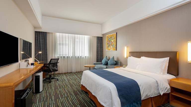 Das Holiday Inn Express Shanghai New Jinqiao liegt im aufstrebenden Stadtbezirk Pudong New Area, nur 800 m vom U-Bahnhof Jinjing Road (Linie 12) entfernt. Die günstige Lage ermöglicht es den Gästen, den Bahnhof Shanghai Hongqiao in ca. 1 Stunde mit dem Auto zu erreichen und den internationalen Flughafen Shanghai Pudong in ca. 45 Minuten. Die Freihandelszone Shanghai South Waigaoqiao ist nur 5,5 km entfernt.