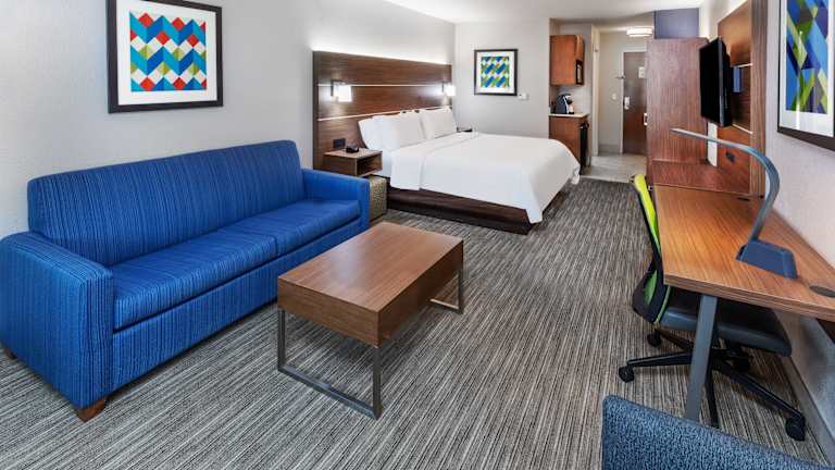 Die Zimmer im Holiday Inn Express Hotel & Suites Lafayette South sind komfortabel eingerichtet und verfügen über Annehmlichkeiten wie kostenfreies WLAN, einen Flachbild-Kabel-TV, eine Mikrowelle und einen Kühlschrank. Kaffeezubehör ist ebenfalls vorhanden.