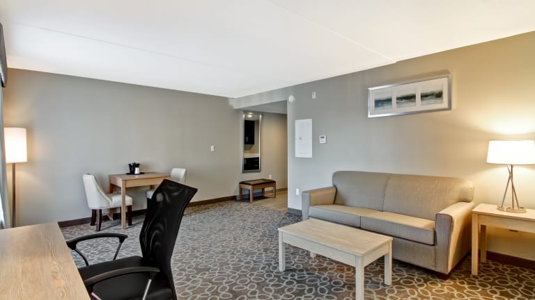 Das Holiday Inn Express & Suites Oshawa Downtown - Toronto Area befindet sich in Oshawa, in der Nähe des General Motors Centre und des Oshawa Centre. Verschiedene Restaurants sind in unmittelbarer Nähe zu finden. Die Lage ermöglicht es den Gästen, die Umgebung bequem zu erkunden und ist auch eine gute Ausgangsbasis für Ausflüge nach Toronto.