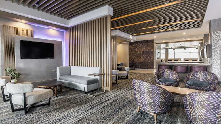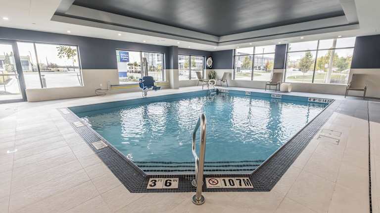 Holiday Inn Express & Suites Toronto Airport South by IHG bietet seinen Gästen eine komfortable Unterkunft mit modernen Annehmlichkeiten. Das Hotel verfügt über eine Rezeption, einen Aufzug, eine Gepäckaufbewahrung, einen Safe und einen Geldautomaten. WLAN ist im gesamten Hotel verfügbar, ebenso ein Transferservice und ein 24h-Sicherheitsdienst. Die Unterkunft umfasst insgesamt sieben Etagen mit 120 Zimmern und bietet einen Innenpool zur Entspannung und Erfrischung.