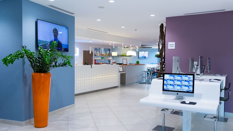 Das Holiday Inn Express Toulon - Est bietet einen komfortablen Aufenthalt in der Nähe des Zentrums von Toulon. Mit seinen modernen Annehmlichkeiten, dem freundlichen Personal und der günstigen Lage ist es eine gute Wahl für Geschäftsreisende und Urlauber. Genießen Sie den kostenfreien Zugang zum Businessbereich, die entspannte Atmosphäre in der Hotelbar und die Nähe zu Restaurants und Bars in der Umgebung.