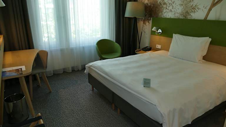 Die Zimmer im Holiday Inn Frankfurt - Alte Oper sind hell und modern eingerichtet und verfügen über Annehmlichkeiten wie Klimaanlage, Flachbild-TV und eigenes Bad mit Haartrockner und kostenlosen Pflegeprodukten. Ein Safe und Kaffee- und Teezubehör sind ebenfalls vorhanden. Für zusätzlichen Komfort sorgt die tägliche Zimmerreinigung.