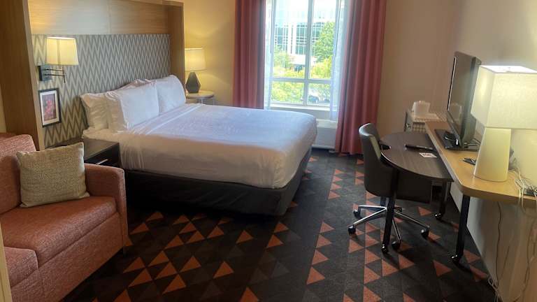 Das Holiday Inn Gwinnett Center bietet 143 Nichtraucherzimmer auf 6 Etagen. Die Zimmer sind komfortabel und mit einer Klimaanlage, einem Doppelbett, einem Safe, einem Schreibtisch, einem Kühlschrank, einer Mikrowelle und einer Tee-/Kaffeemaschine ausgestattet. Zur weiteren Ausstattung gehören ein Flachbildfernseher mit Kabelempfang und Pay-per-View-Optionen sowie kostenloses WLAN. Die Badezimmer verfügen über eine Dusche, einen Haartrockner und kostenfreie Kosmetikartikel.