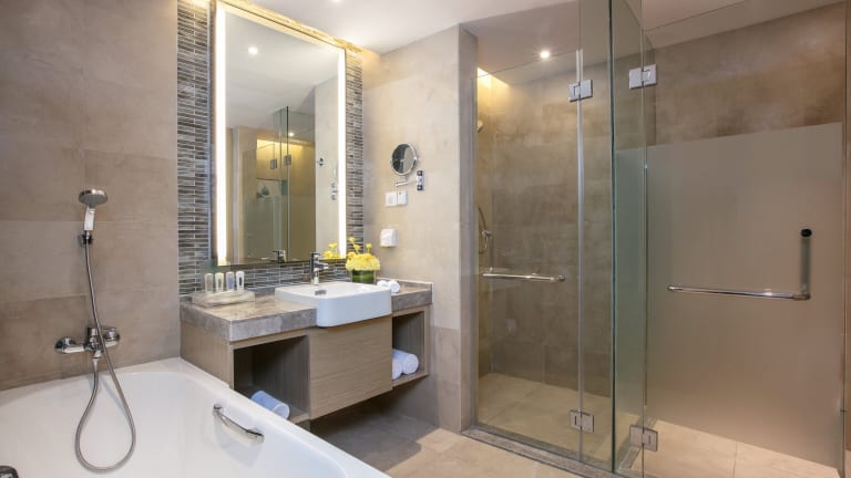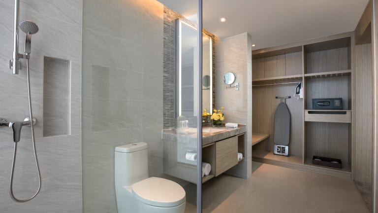 Die Zimmer sind mit einem Kleiderschrank, einem eigenen Badezimmer mit Dusche, kostenlosen Pflegeprodukten und Klimaanlage ausgestattet. Alle Zimmer bieten Stadtblick und einen Safe.